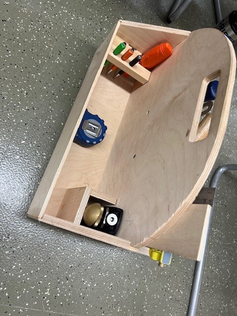 Here’s a picture of the block which we were tasked with making in addition to a table and the toolbox (from both sides) from which were to accomplish this.
